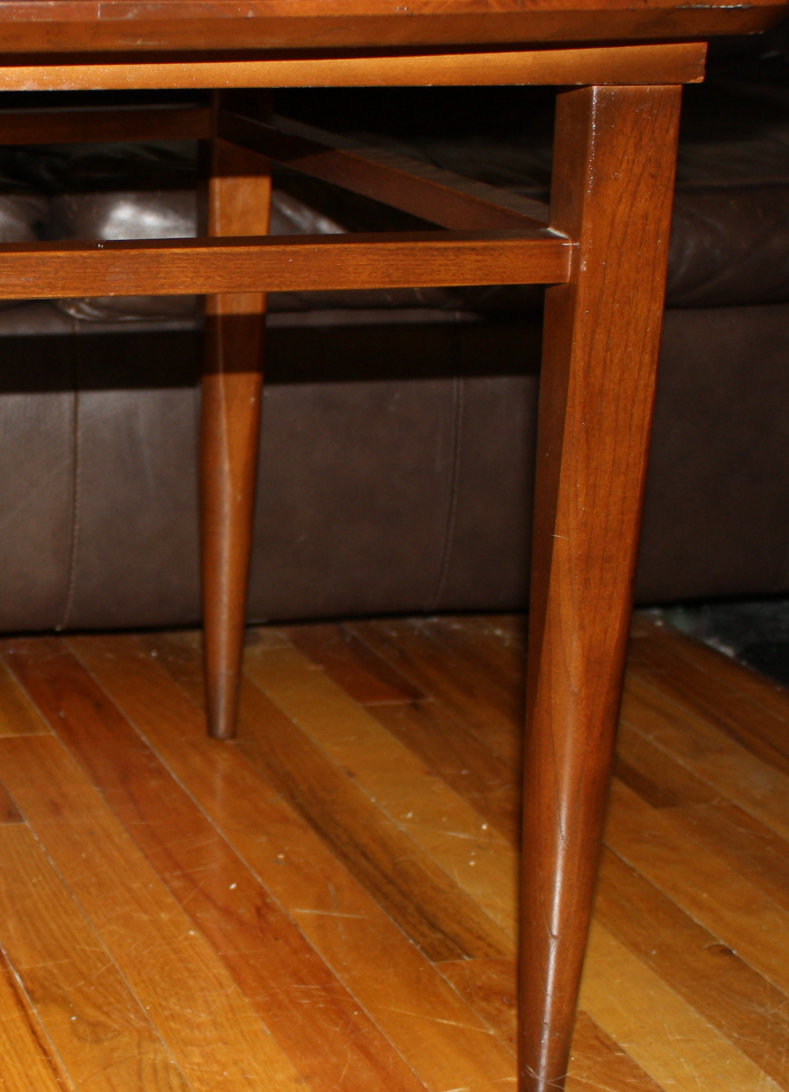 This is a Mid Century Modern coffee table with the mcm matte formica top, and signature tapered legs. Compact...
