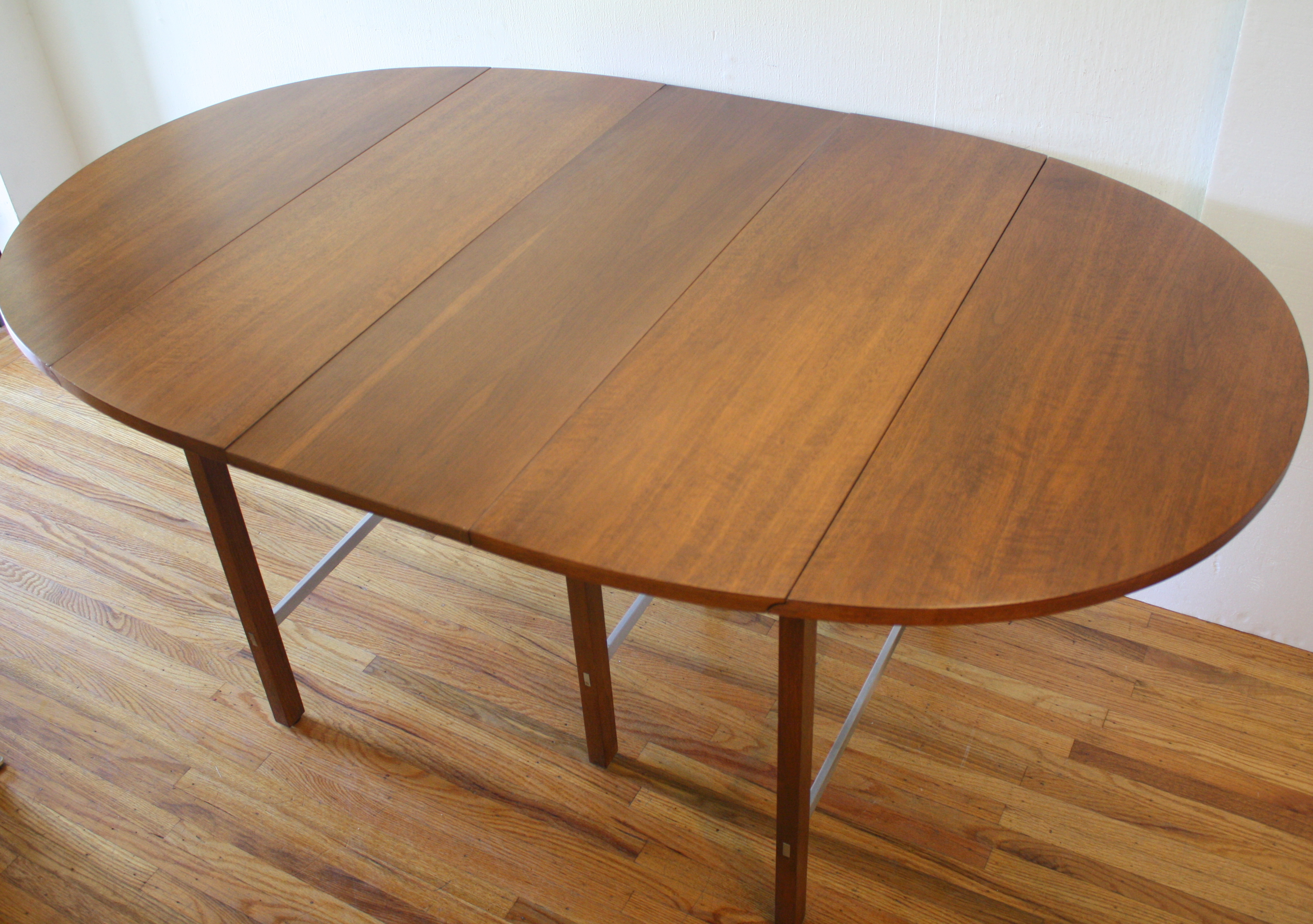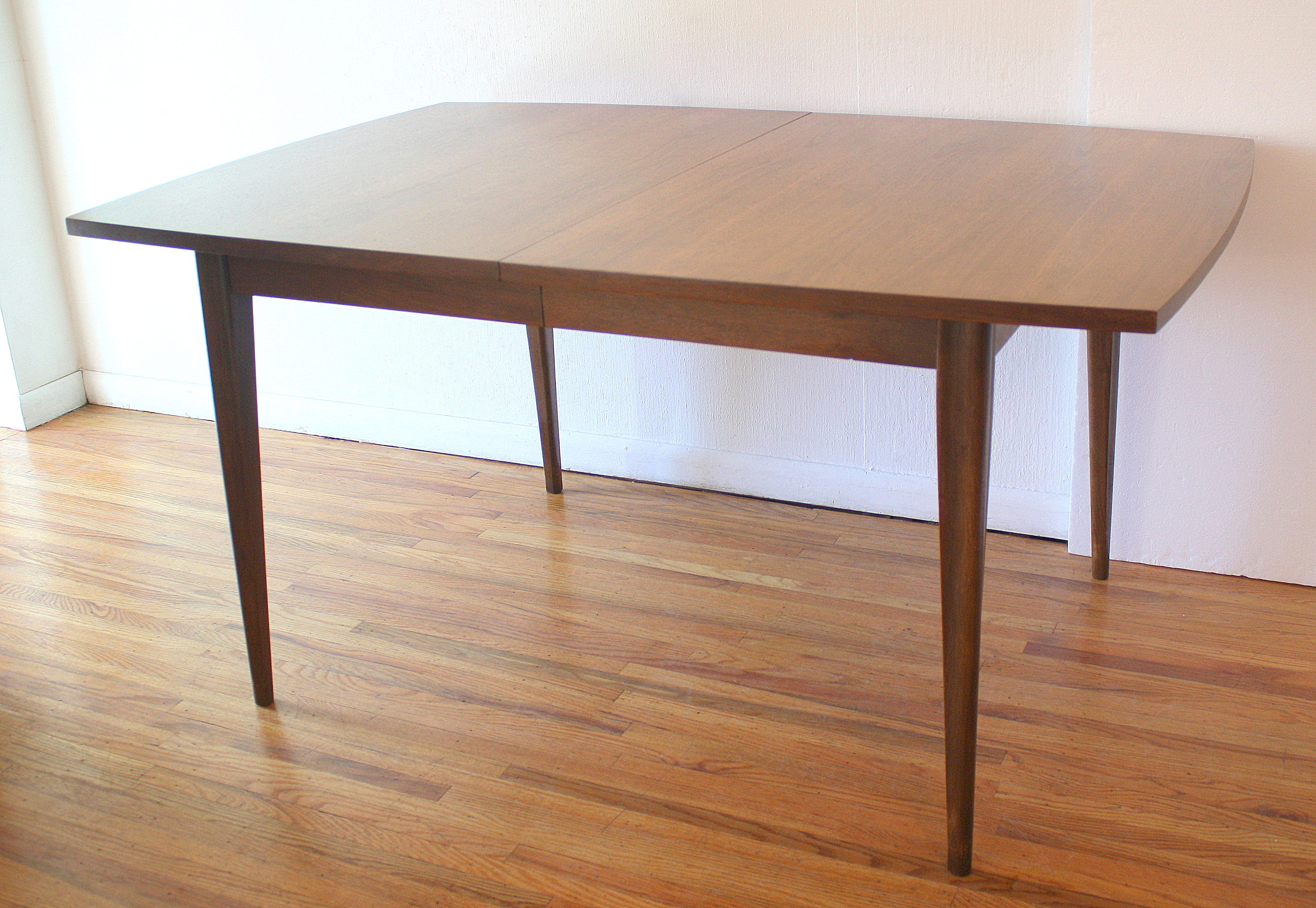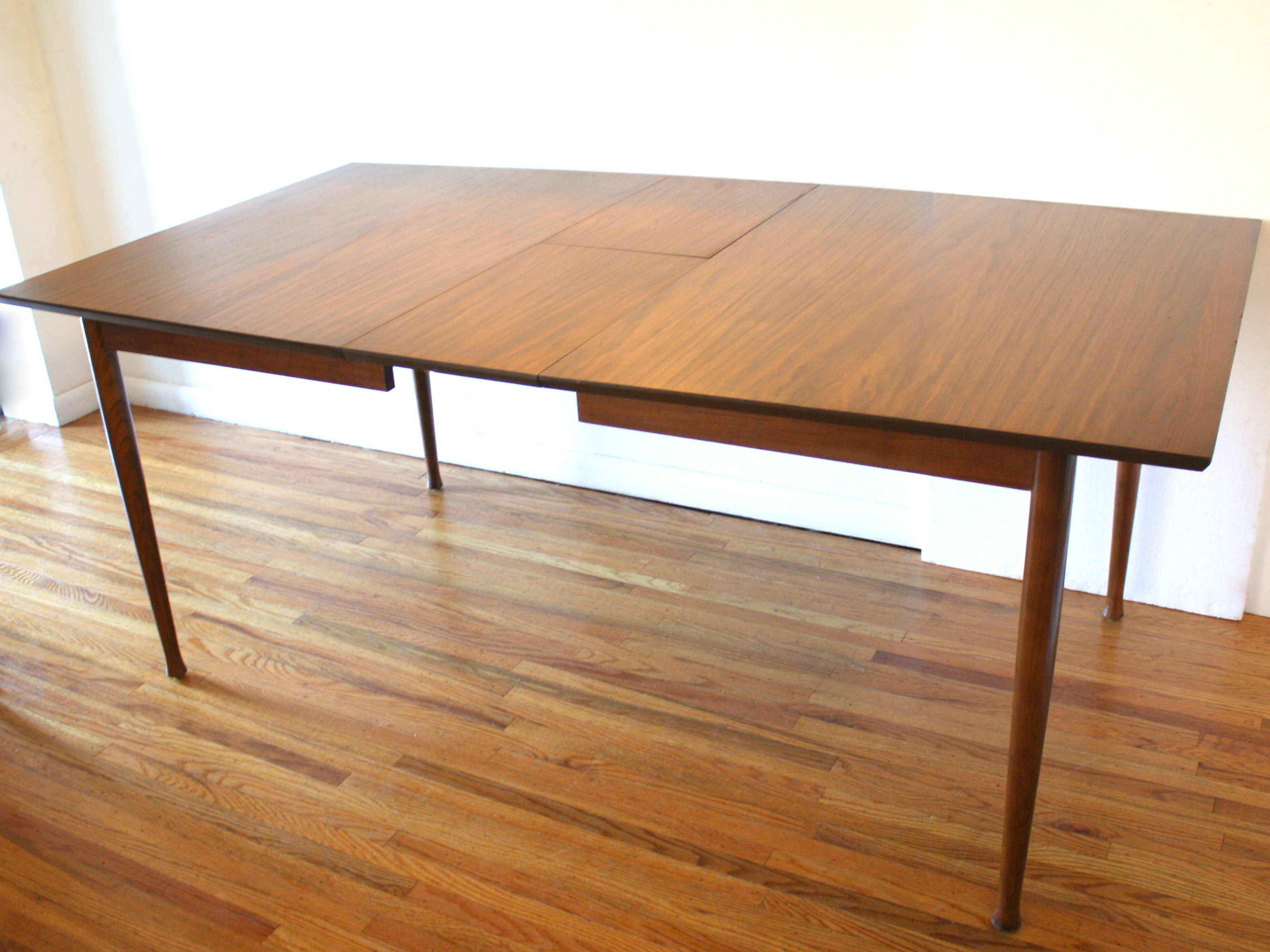 This is a mid century modern dining table by Paul McCobb. It has 2 folding leaves, and one 12″W...