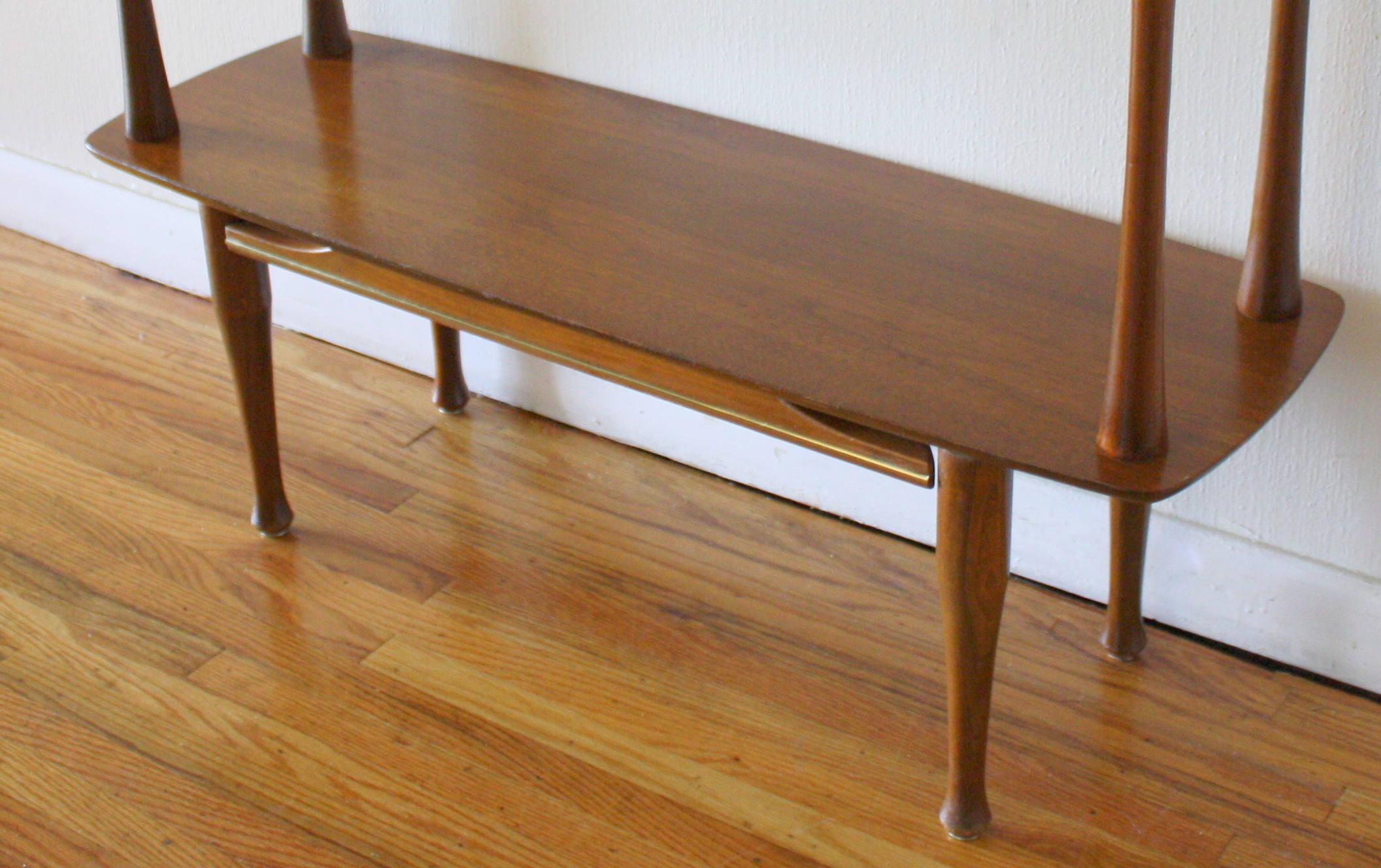 This is a mid century modern media stand made by the Gusdorf company. It is made of solid wood...