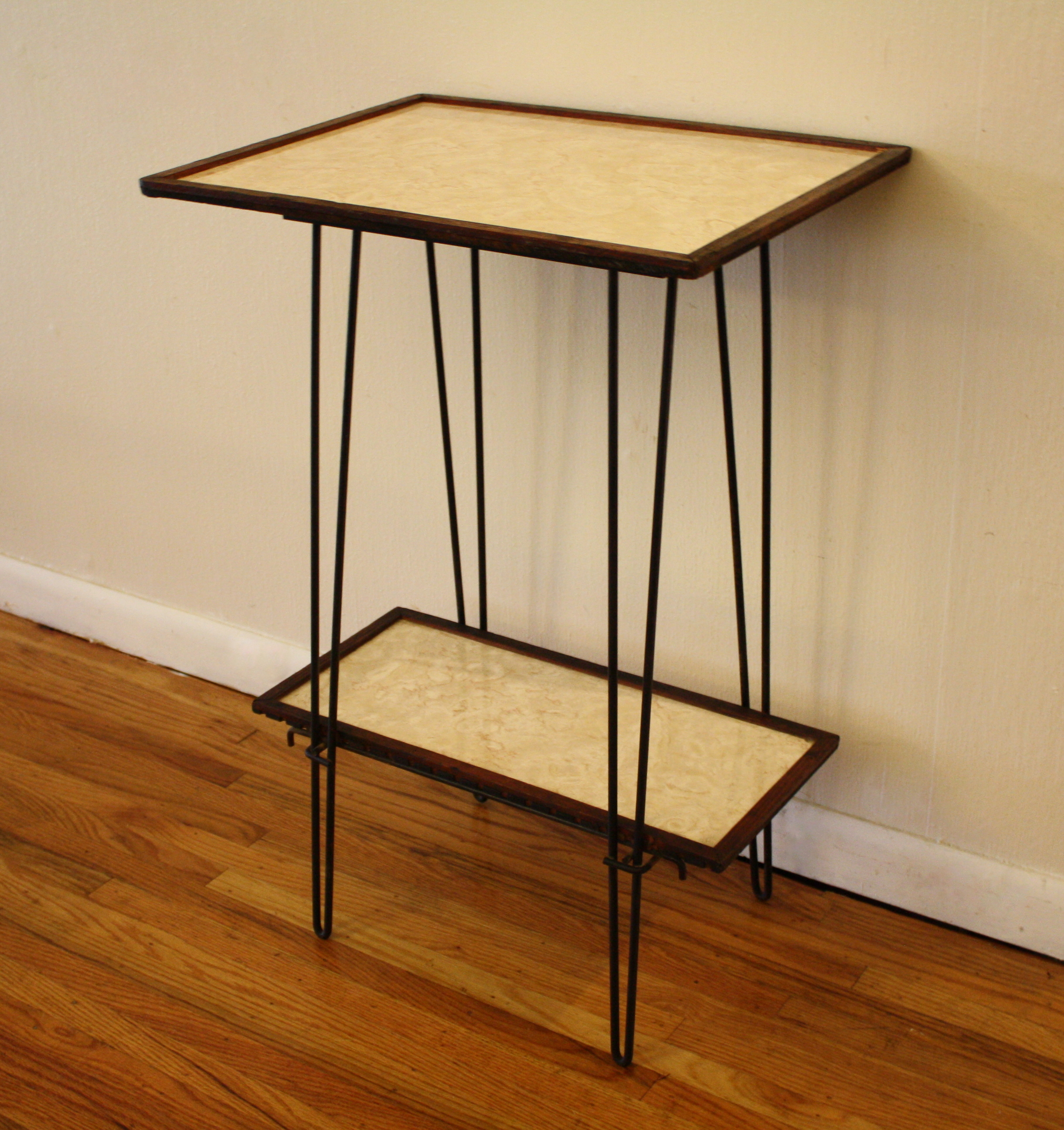 These are 2 mid century modern hairpin side tables. The first side table was made in Denmark. This mini...