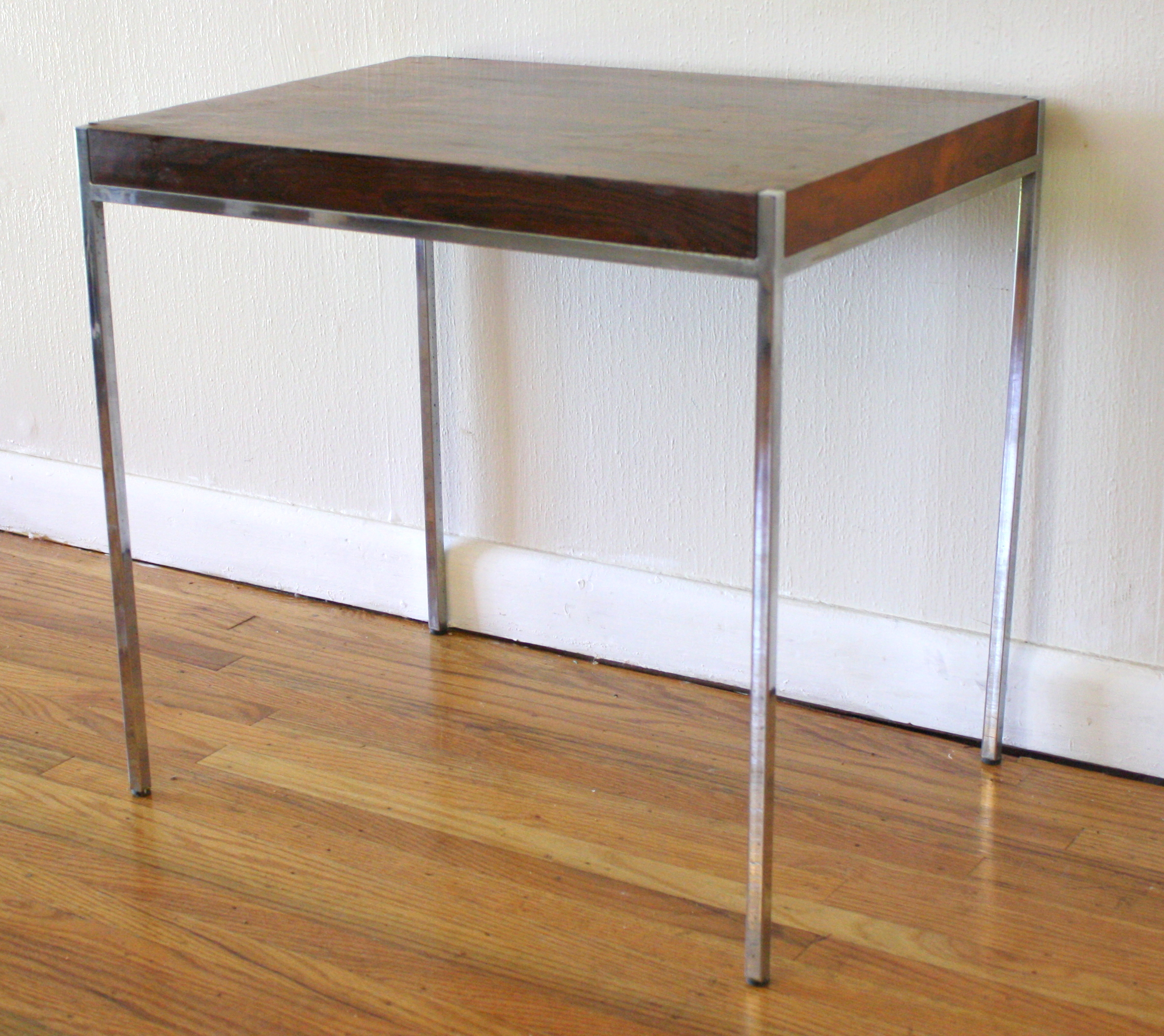 This is a mid century modern side end table in the style of Milo Baughman. It has a chrome...