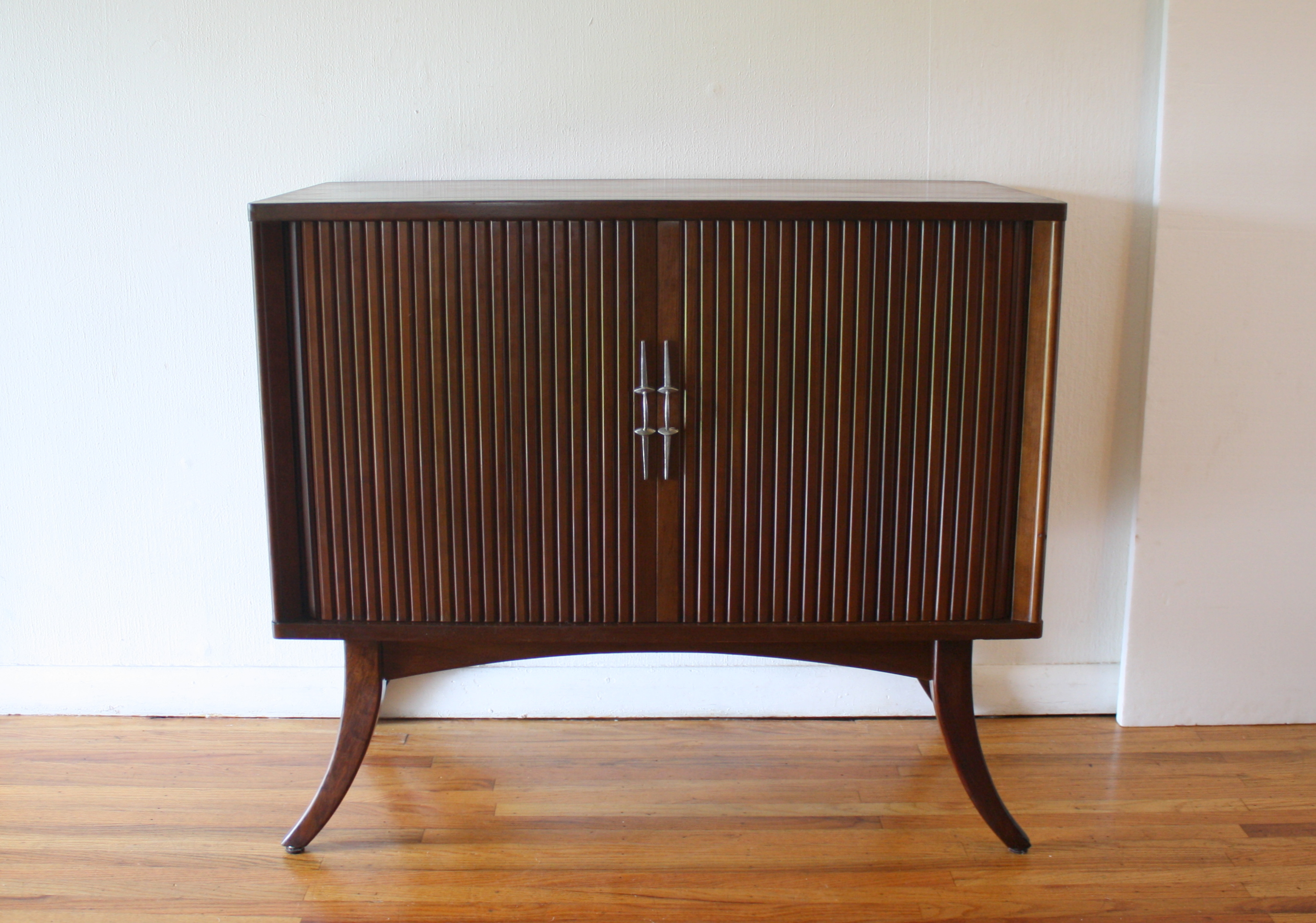 This is a mid century modern credenza with a tambour door design. The doors slide easily and have the...